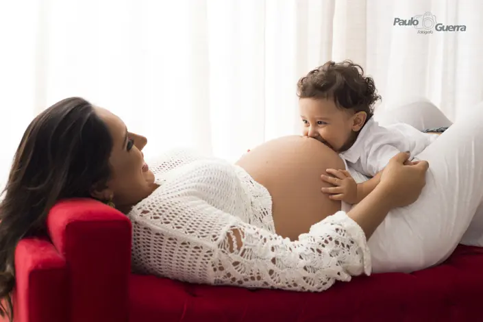Ensaio fotográfico para gestantes, em estúdio ou externo.